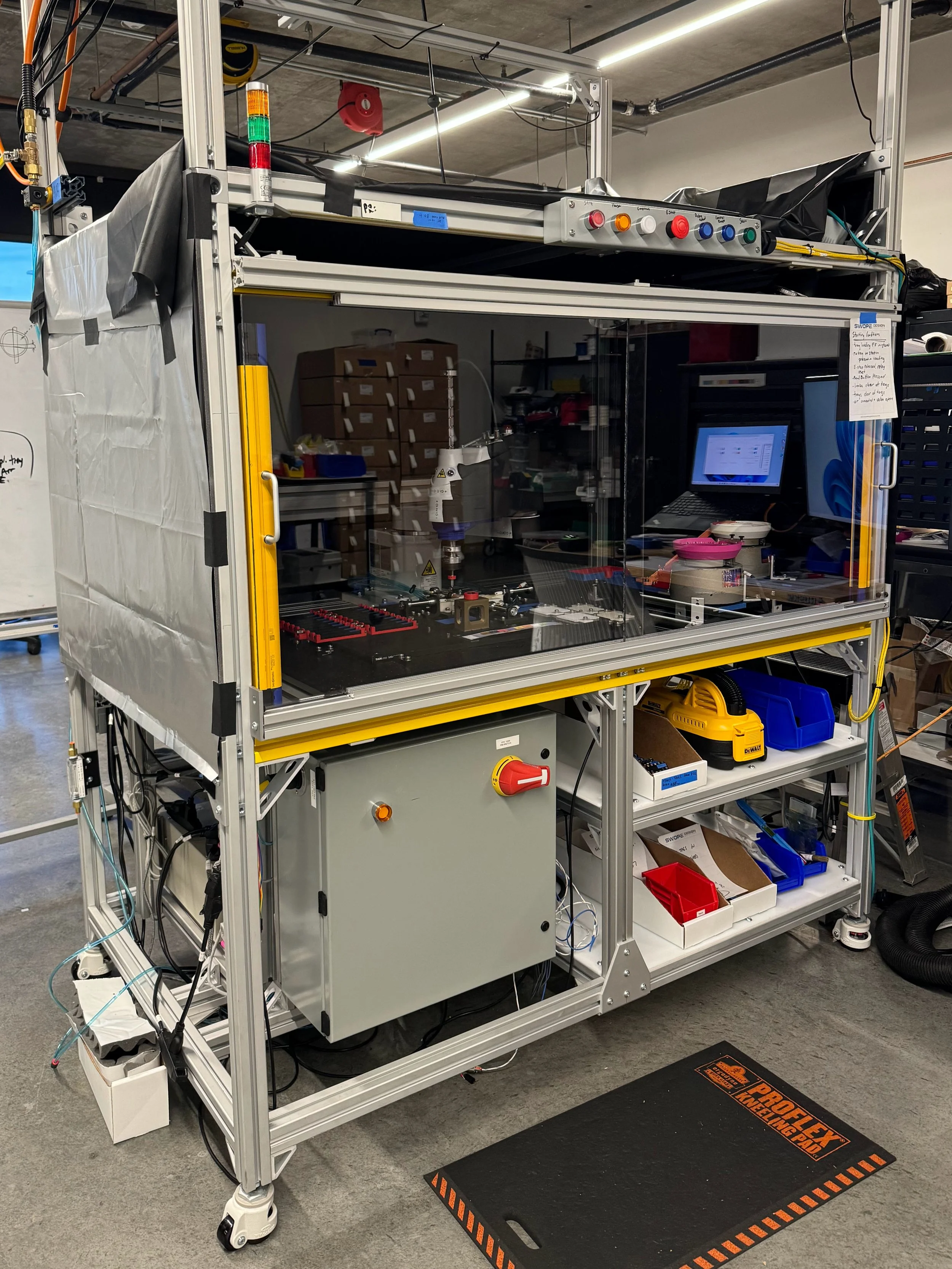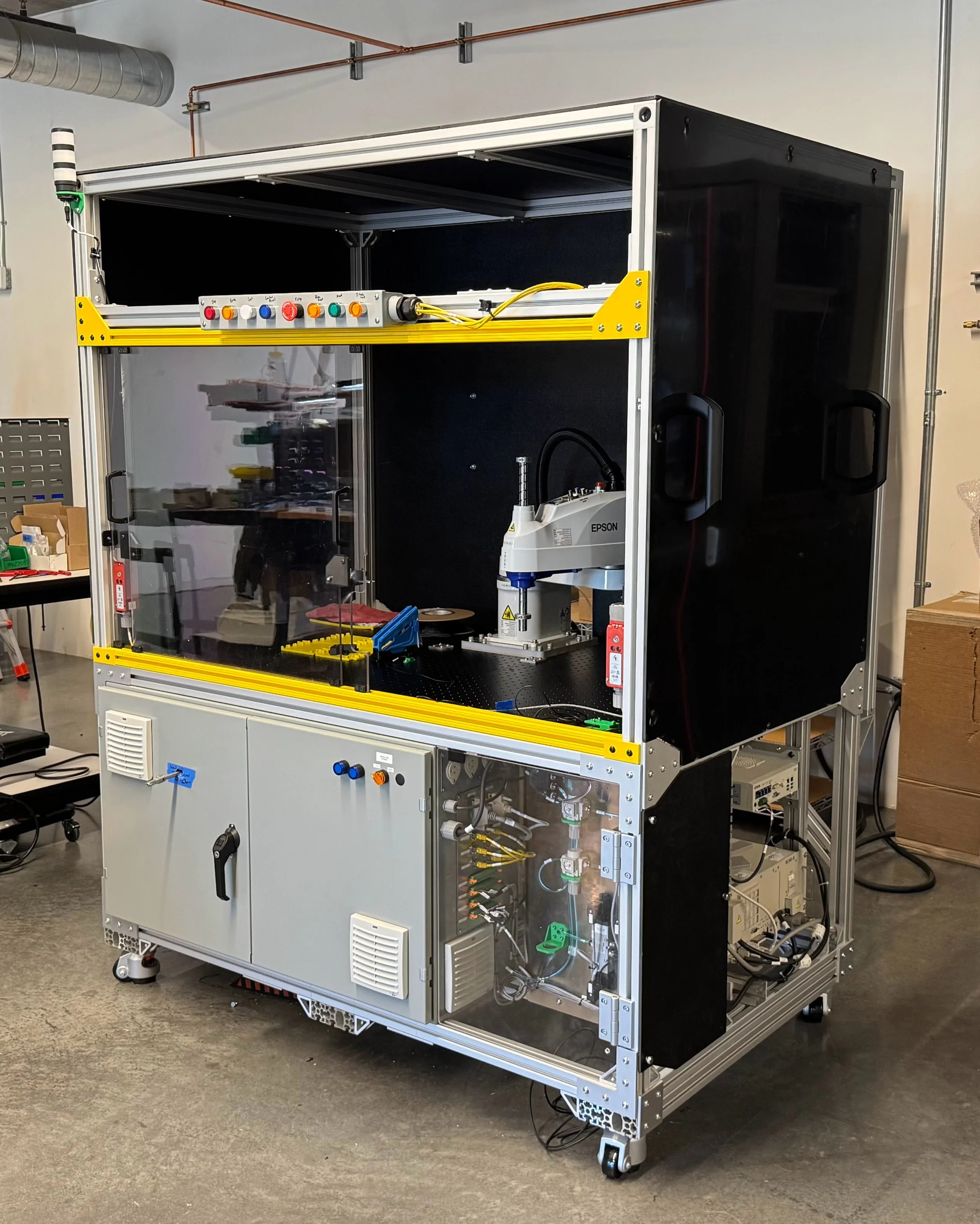 I collaborated with two other engineers to design and build an automated assembly system to scale and streamline the manufacturing process for a medical device product. My responsibilities included preliminary research, concept development, system architecture, design and build of all mechanical subsystems, system integration, bring-up, testing, training, and handoff. We built two units and made significant improvements to the original design with version two. Once the machines entered production, we worked to improve reliability, crash detection, and physical error handling.